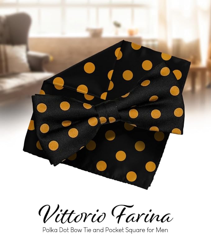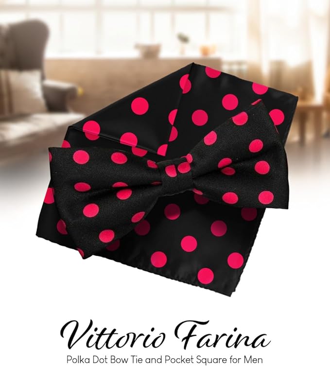 Vittorio Farina Pre-tied Polka Dot Bow Tie & Pocket Square: Accessories for Shirt, Blazer, Suit or Tuxedo