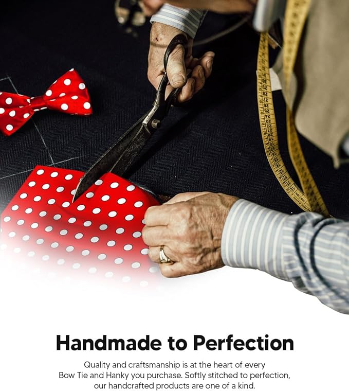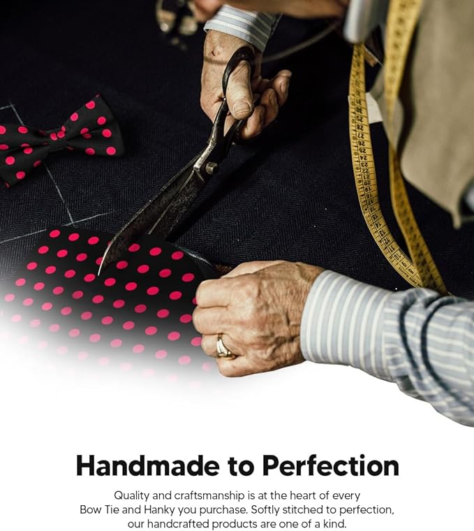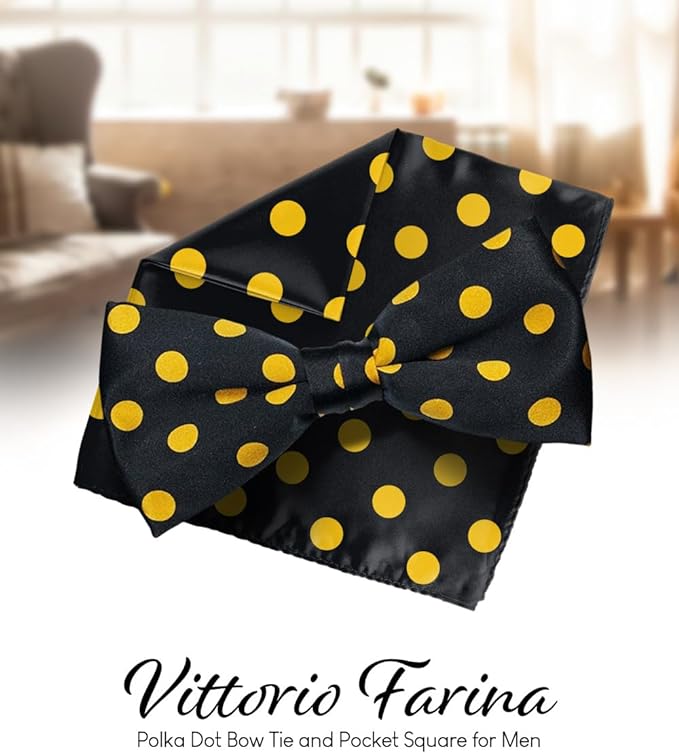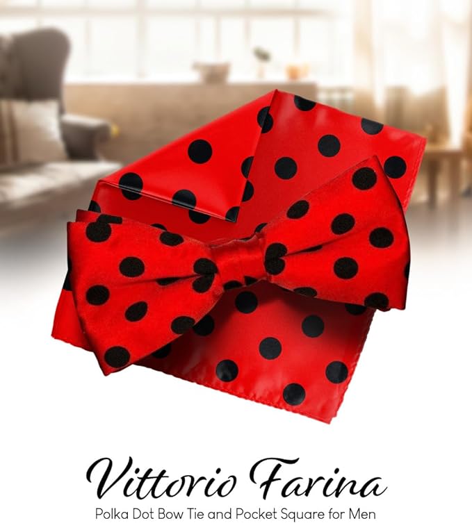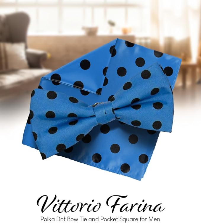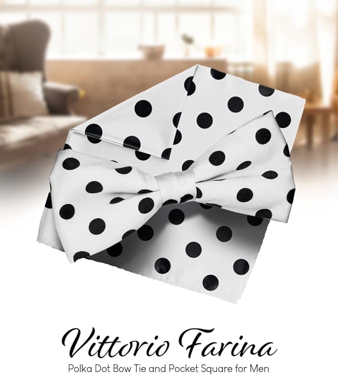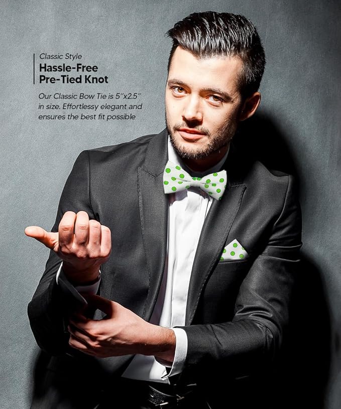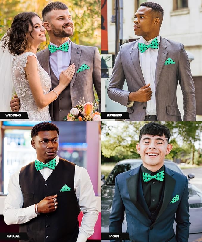 - STYLISH: Sometimes the smallest details can make the biggest difference. Men’s Pre-tied Polka Dot Bow Tie & Pocket Square is the perfect accessory for your shirt, blazer, suit or tuxedo. The stylish Pocket Squares for men add a stylish touch.