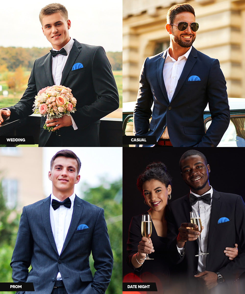 - STYLISH: Sometimes the smallest details can make the biggest difference. Men’s Pre-Folded Pocket Square is the perfect accessory for your shirt, blazer, suit or tuxedo. The stylish Pocket Squares for men add a stylish touch.