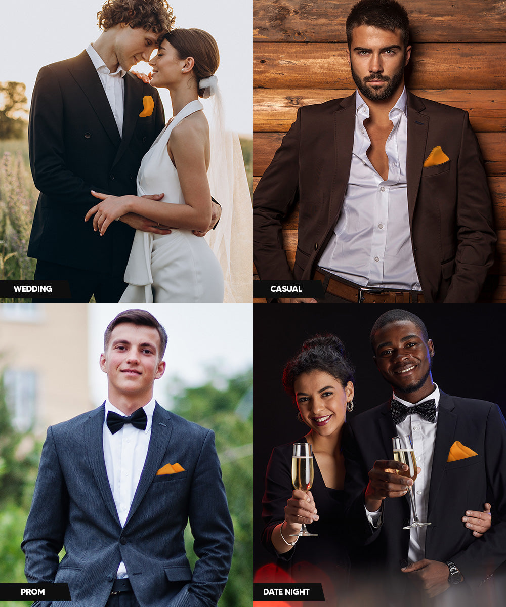 - STYLISH: Sometimes the smallest details can make the biggest difference. Men’s Silky Square Pocket Square is the perfect accessory for your shirt, blazer, suit or tuxedo. The stylish Pocket Squares for men add a stylish touch.