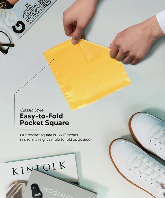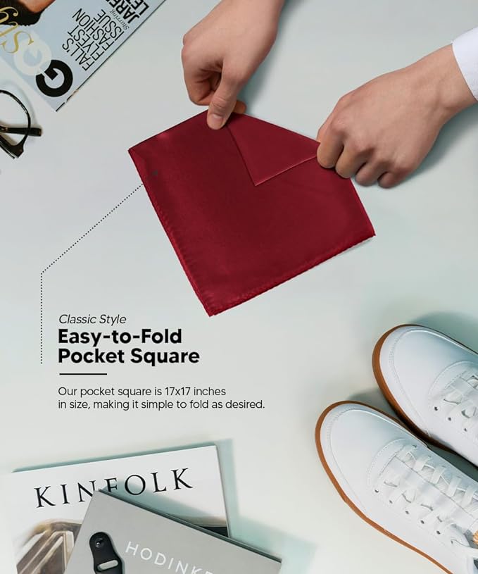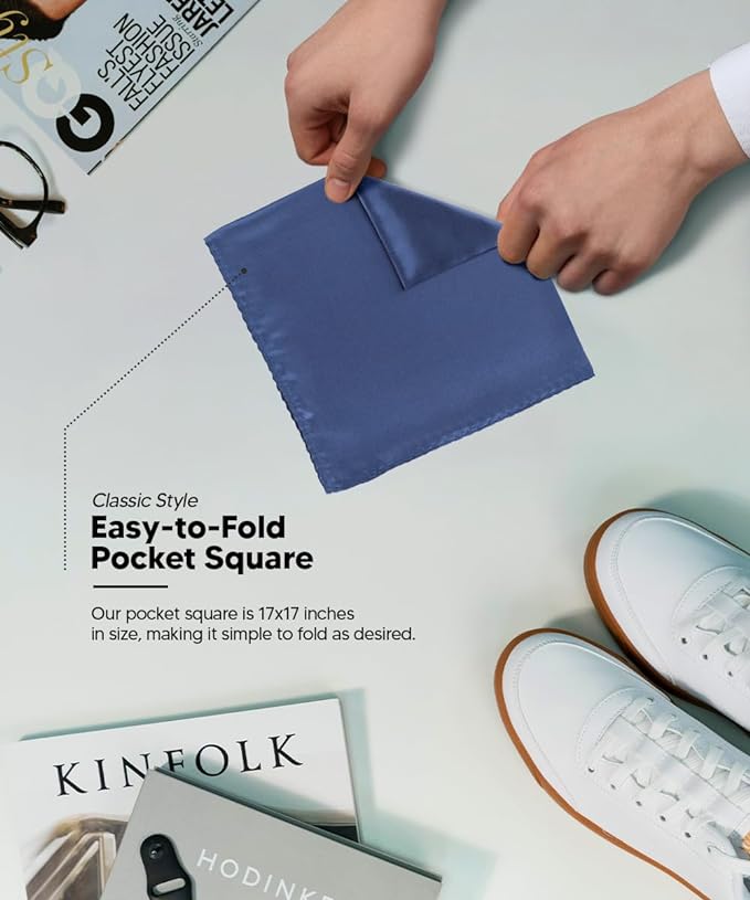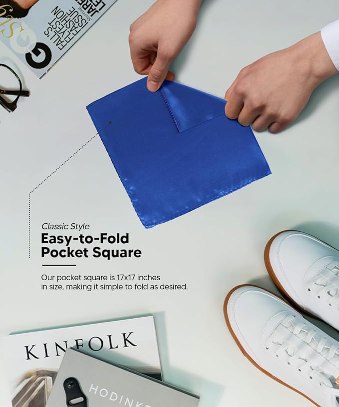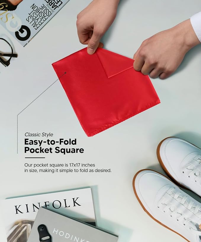 - VARIETY: Our Silky Square Pocket Square come in a variety of vibrant colors and sizes! A regular size of 12x12-in and an oversized 17x17-in. Checkout our Round Pocket Square with Embroidered Piping, Pre-Folded and Silky Square designs in our store, we have a style for any event.