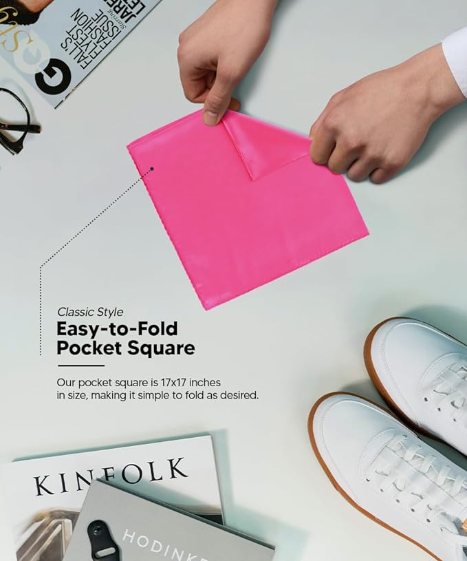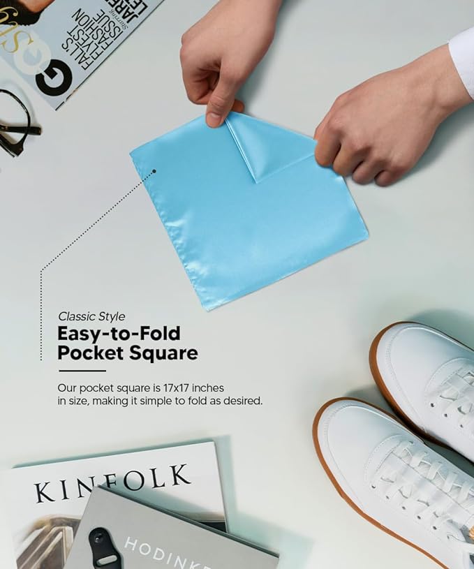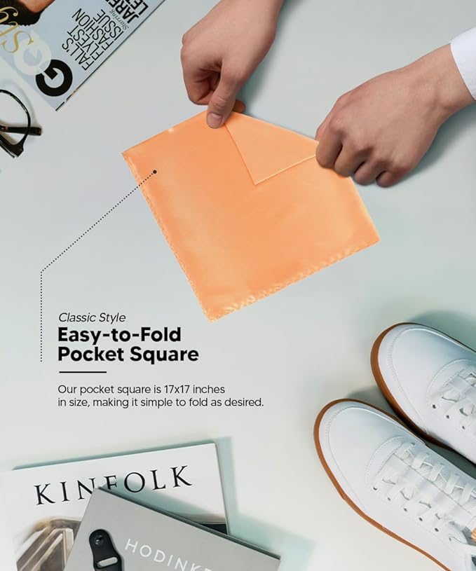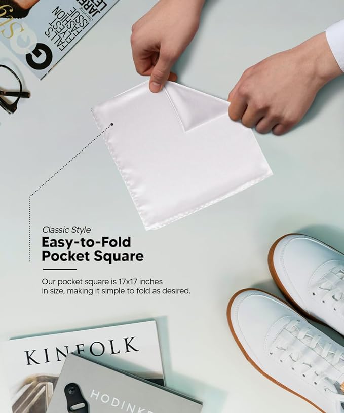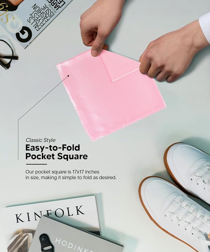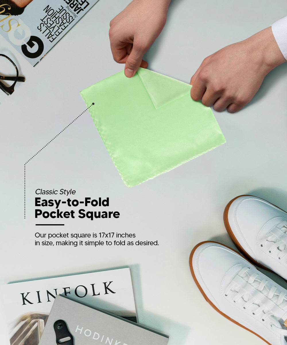 - VARIETY: Our Silky Square Pocket Square come in a variety of vibrant colors and sizes! A regular size of 12x12-in and an oversized 17x17-in. Checkout our Round Pocket Square with Embroidered Piping, Pre-Folded and Silky Square designs in our store, we have a style for any event.