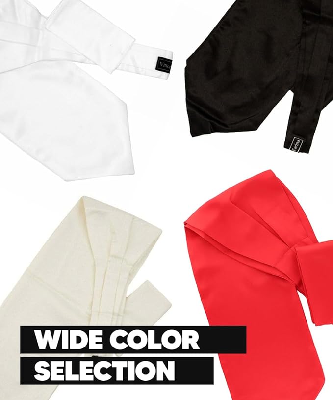 - VARIETY: Our Solid Satin Ascot & Pocket Square come in a variety of designs and colors! Checkout our Bow Tie, Cravat and Necktie designs in our store, we have a style for any event.
