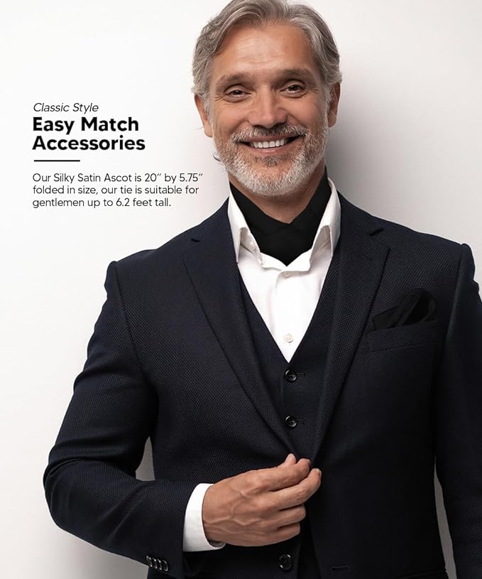 - STYLISH: Sometimes the smallest details can make the biggest difference. Men’s Solid Satin Ascot & Pocket Square is the perfect accessory for your shirt, blazer, suit or tuxedo. The stylish Pocket Squares for men add a stylish touch.