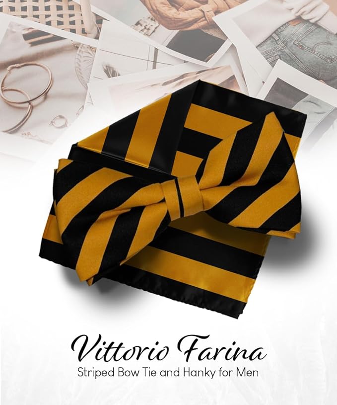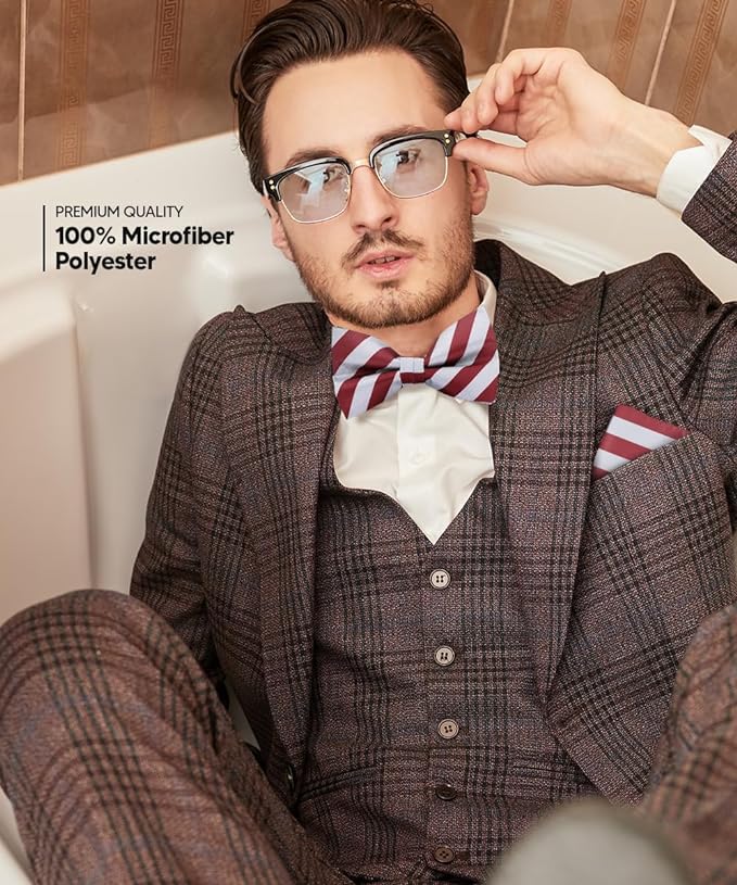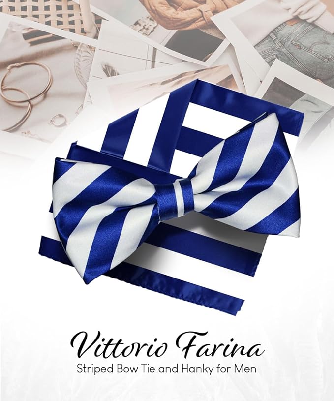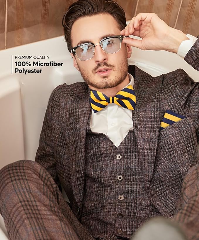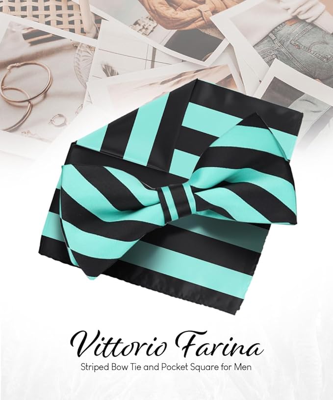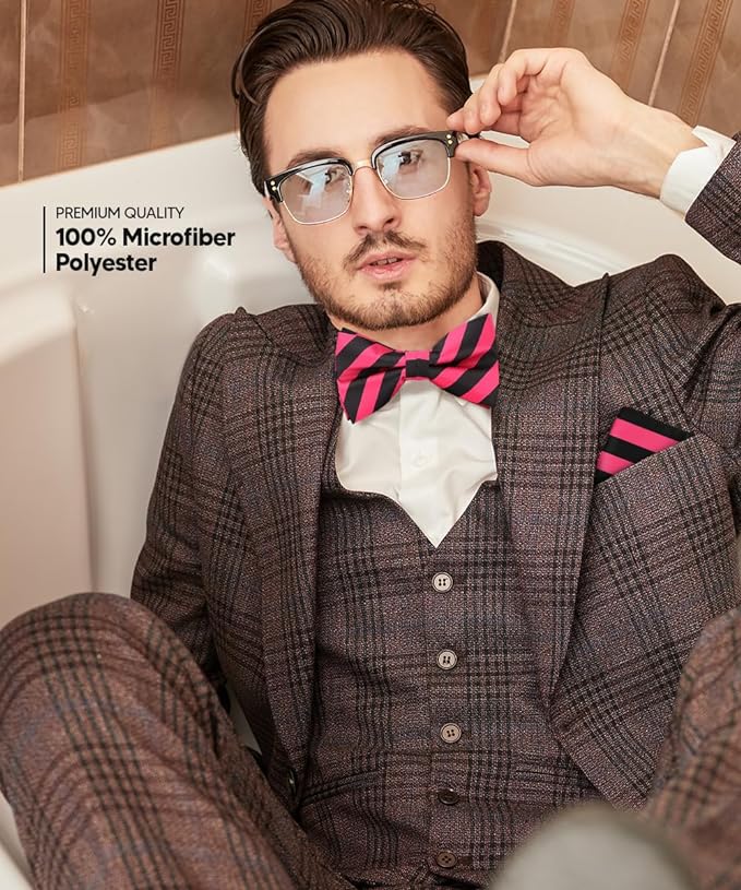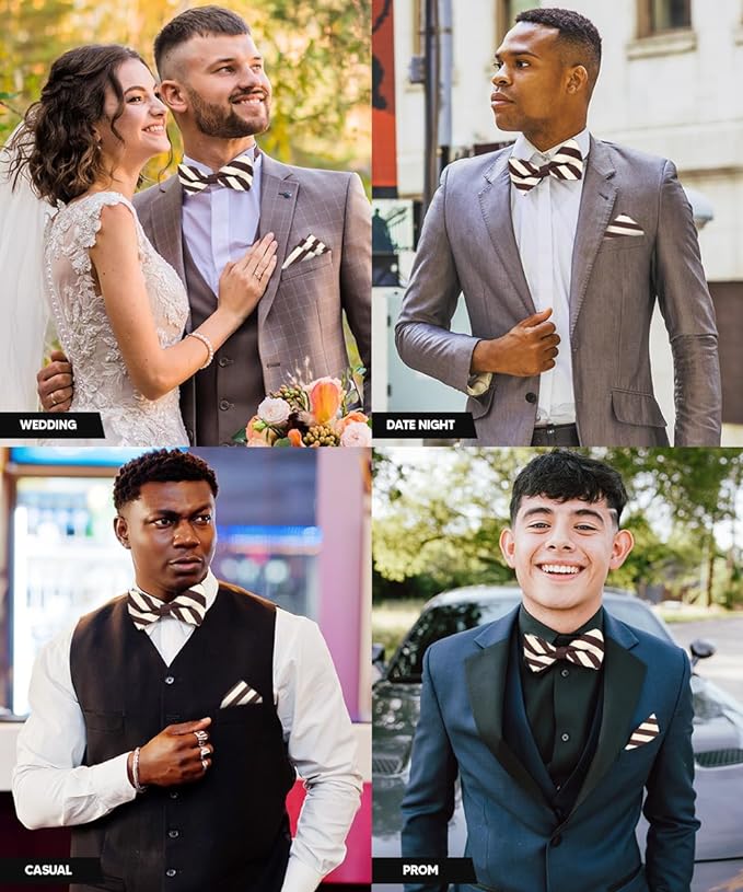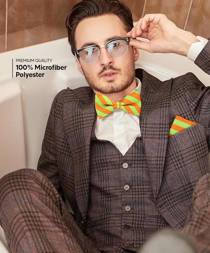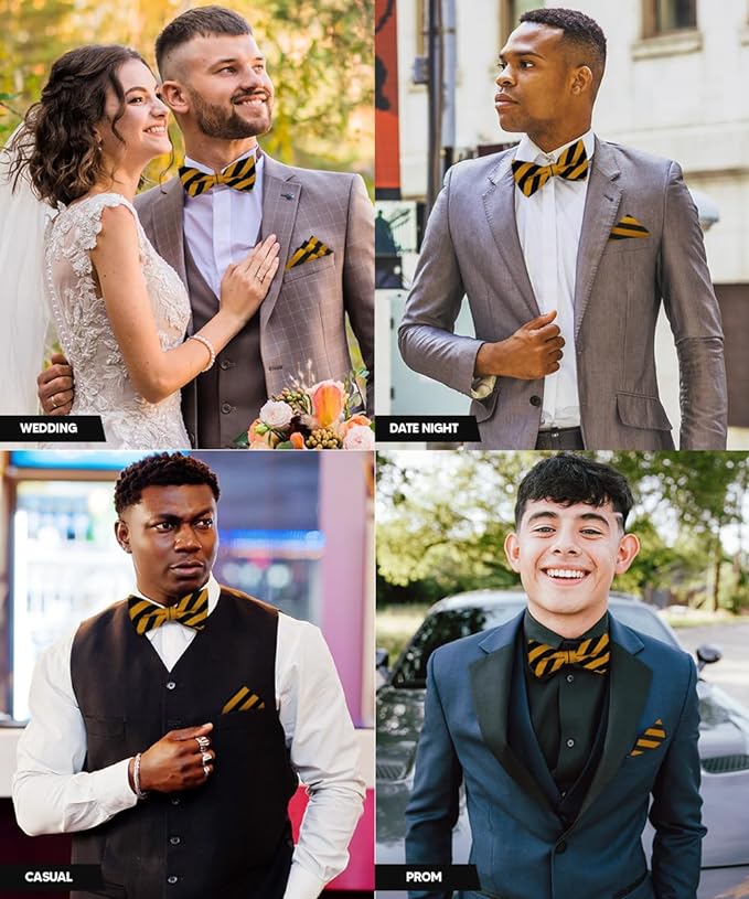 - STYLISH: Sometimes the smallest details can make the biggest difference. Men’s Vibrant Colorful Striped Bow Tie & Pocket Square is the perfect accessory for your shirt, blazer, suit or tuxedo. The stylish Pocket Squares for men add a stylish touch.