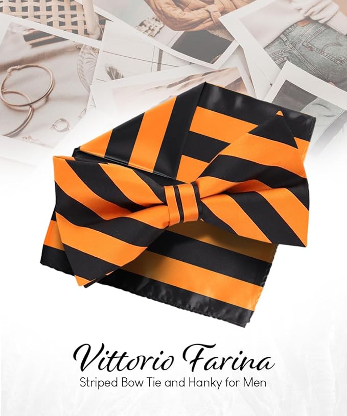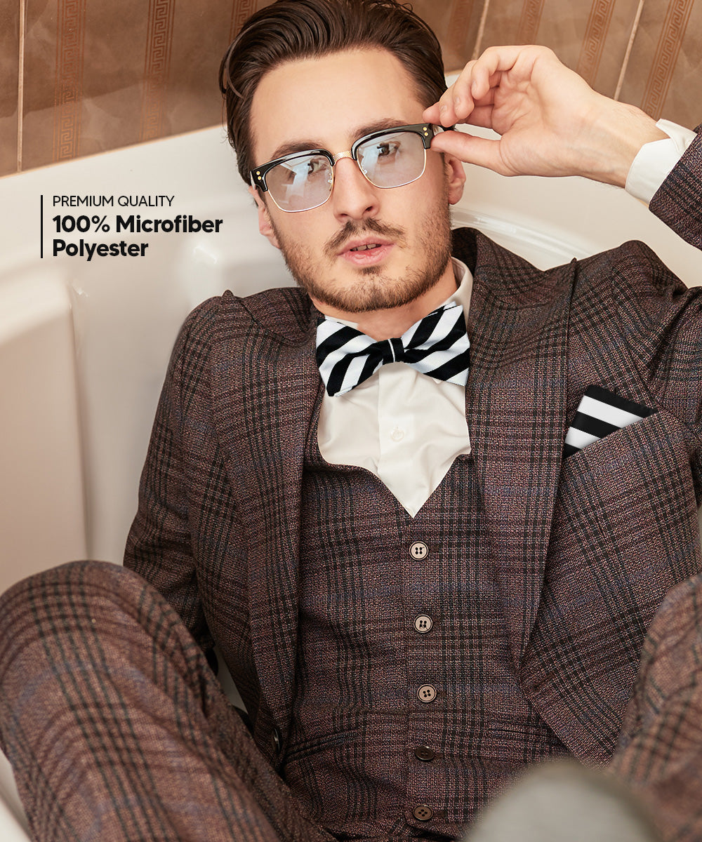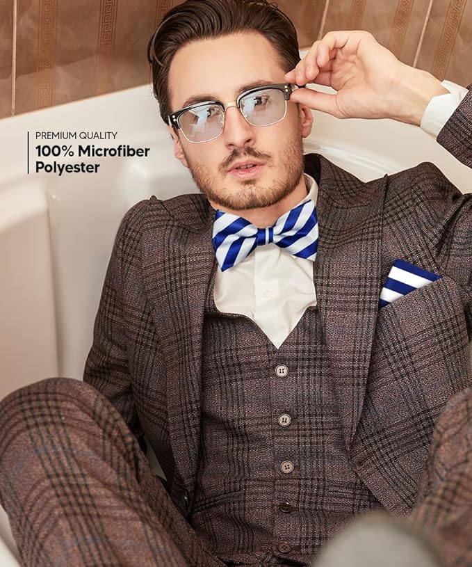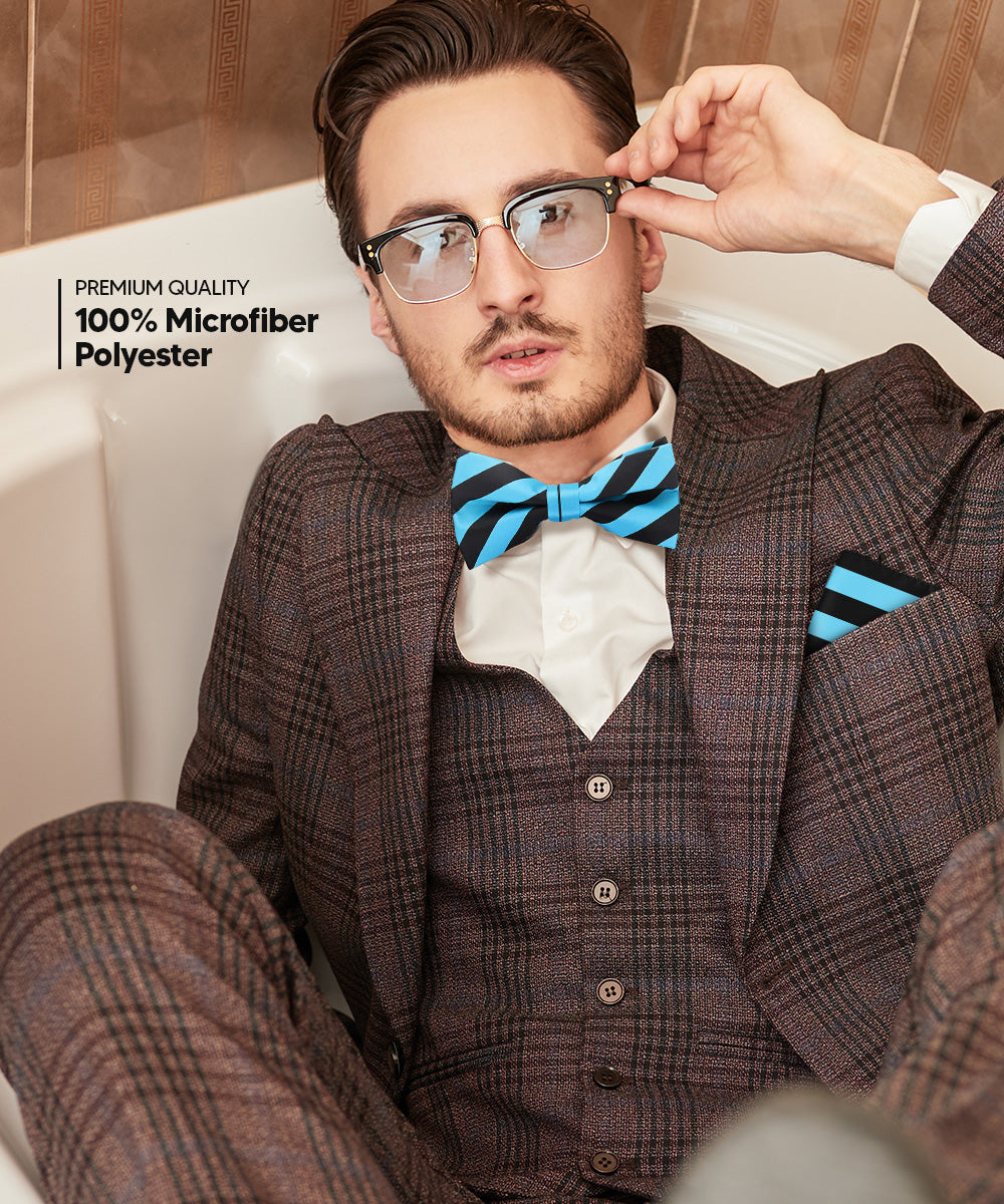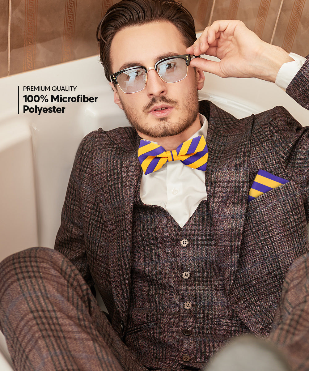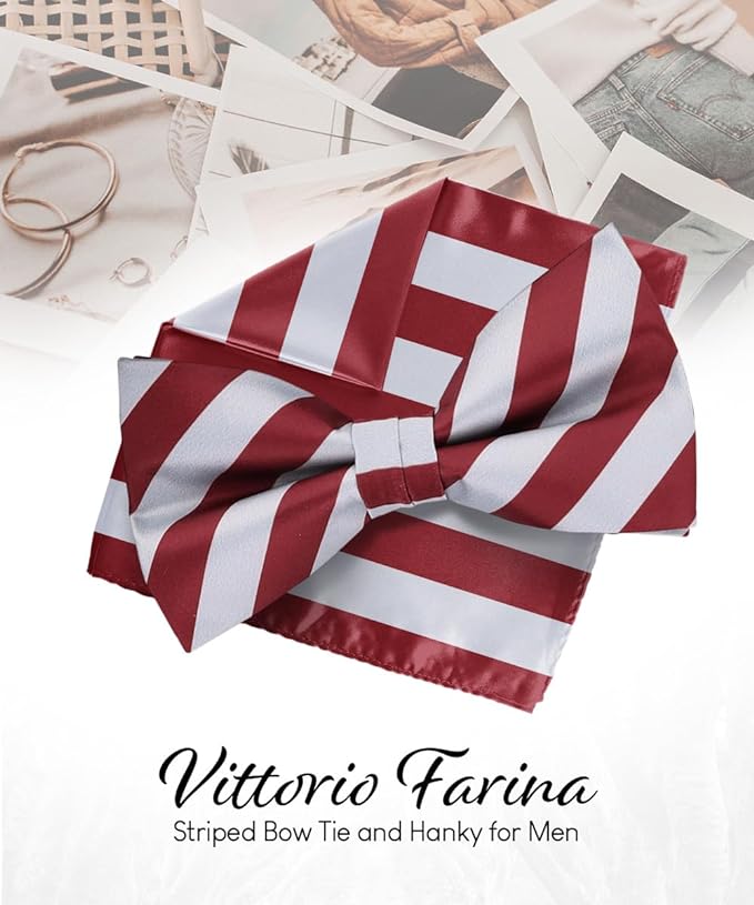- STYLISH: Sometimes the smallest details can make the biggest difference. Men’s Vibrant Colorful Striped Bow Tie & Pocket Square is the perfect accessory for your shirt, blazer, suit or tuxedo. The stylish Pocket Squares for men add a stylish touch.