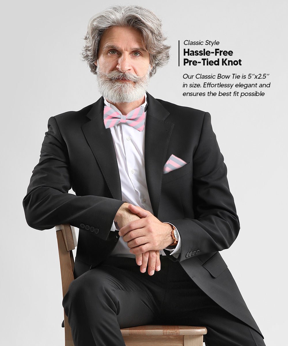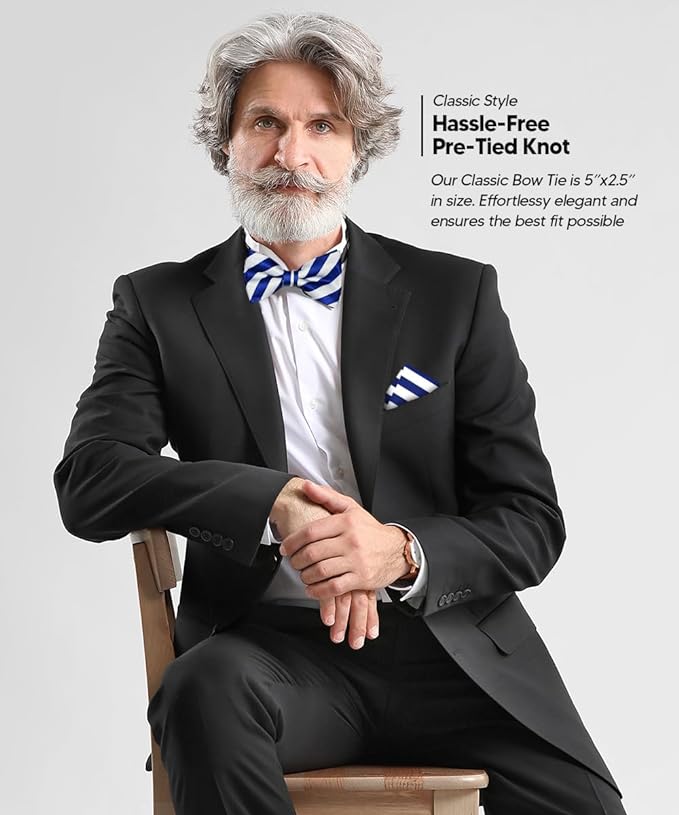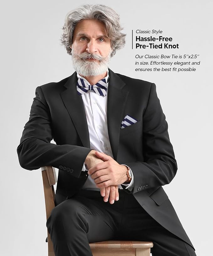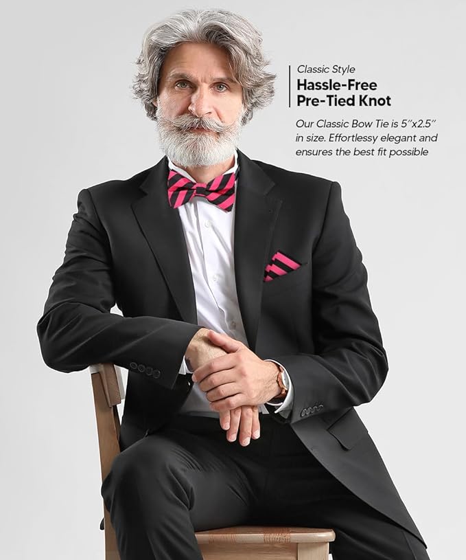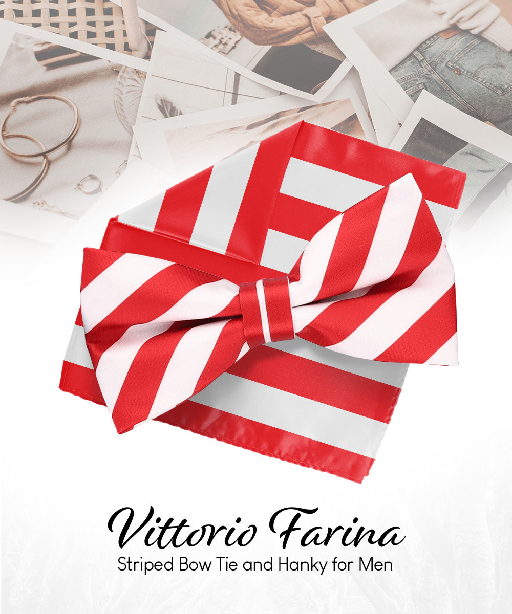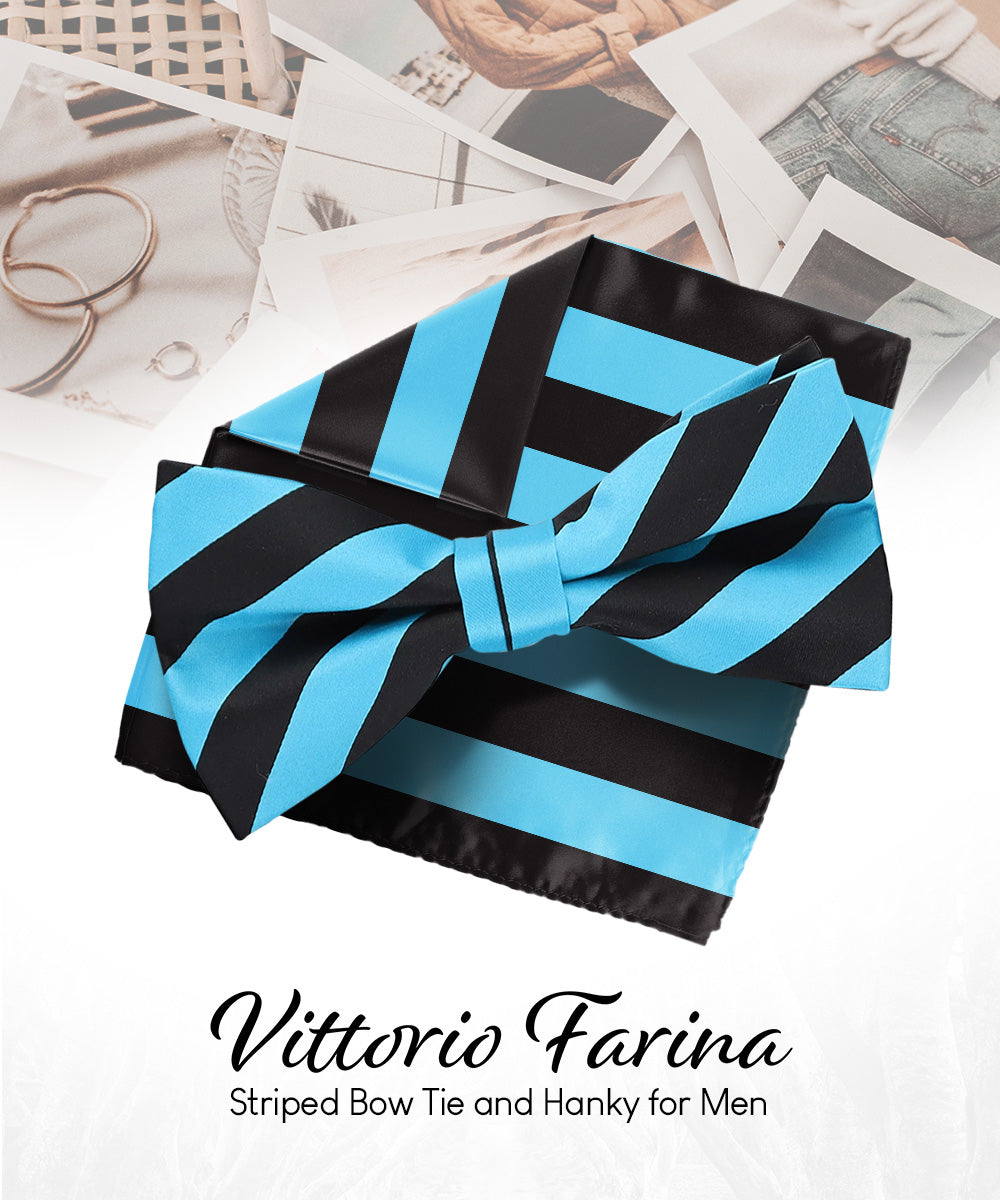 - STYLISH: Sometimes the smallest details can make the biggest difference. Men’s Vibrant Colorful Striped Bow Tie & Pocket Square is the perfect accessory for your shirt, blazer, suit or tuxedo. The stylish Pocket Squares for men add a stylish touch.