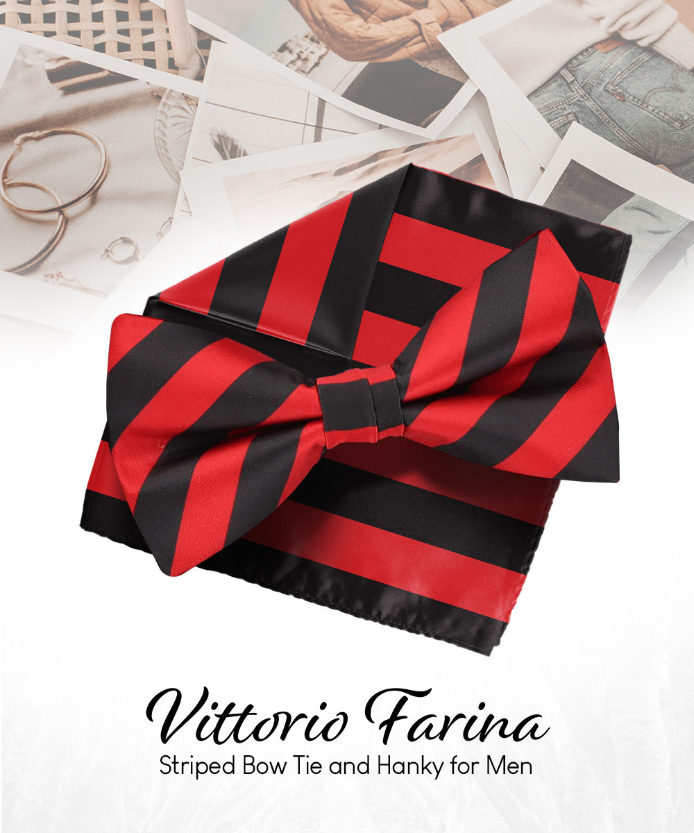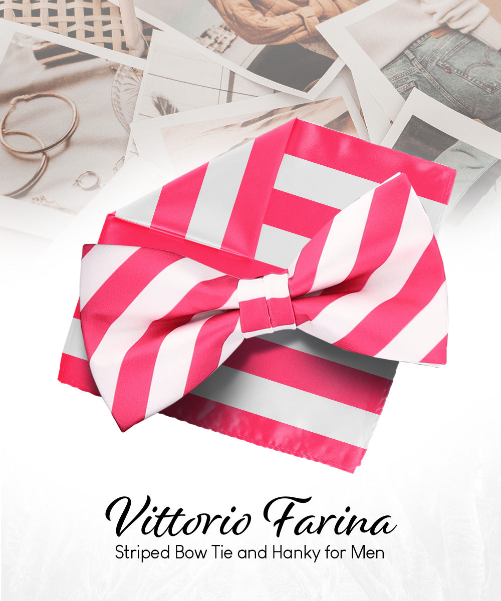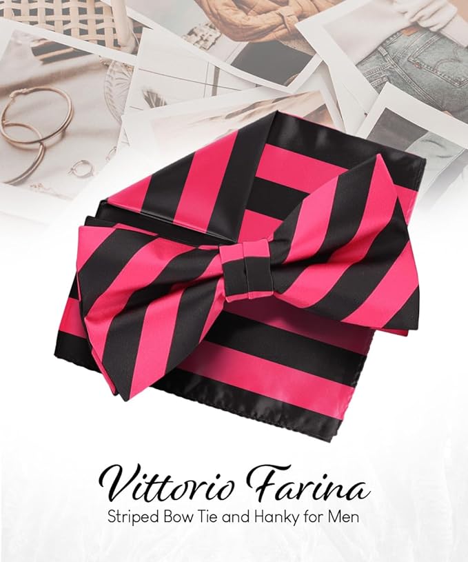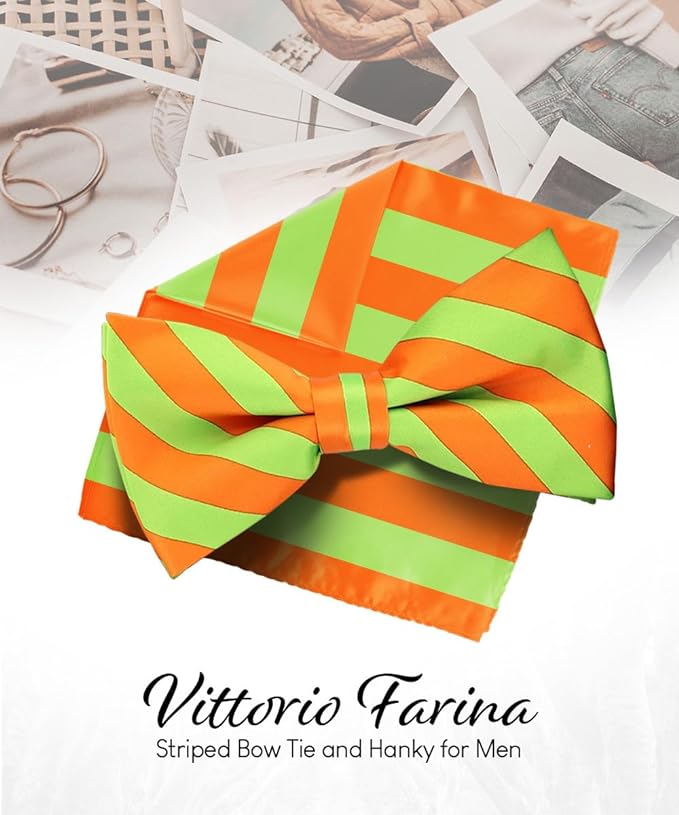 Vittorio Farina Vibrant Colorful Striped Bow Tie & Pocket Square: Accessories for Shirt, Blazer, Suit or Tuxedo