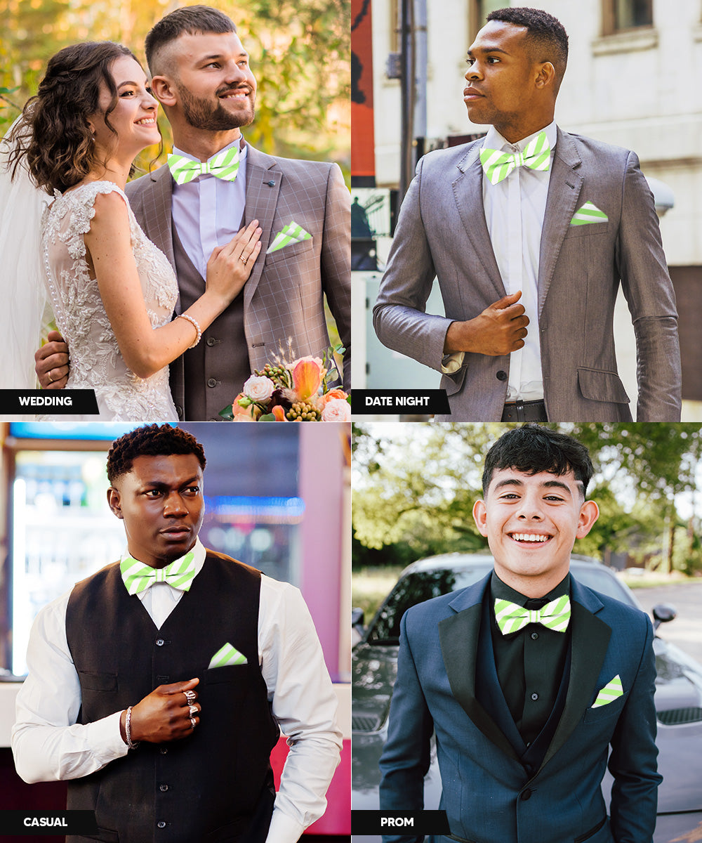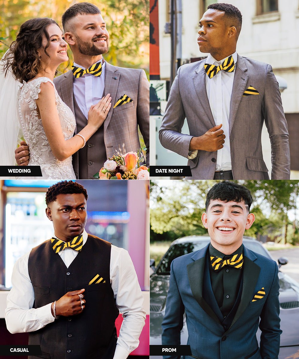 - VARIETY: Our Vibrant Colorful Striped Bow Tie & Pocket Squares come in a variety of colors! Checkout our Ascot, Bow Tie and Necktie designs in our store, we have a style for any event.