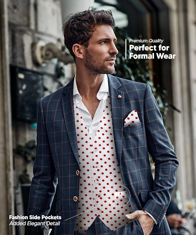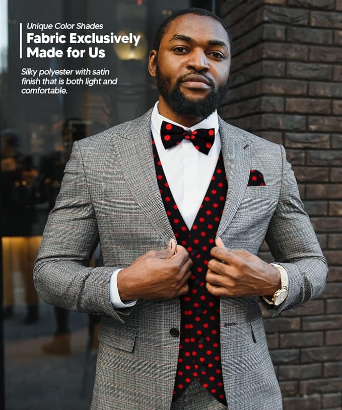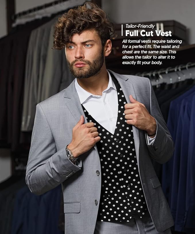 Vittorio Farina Men's White and Black Dot Polka Dot Vest, Necktie, Bow Tie and Pocket Square Set