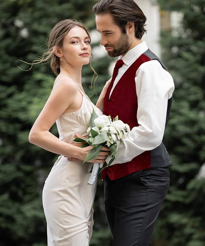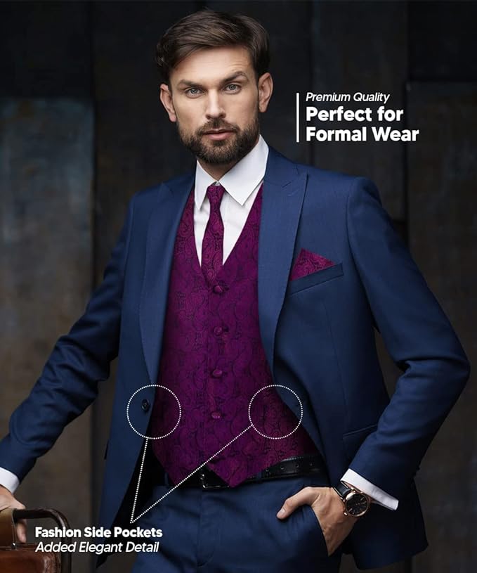 - FORMAL VEST: Formal Suit Vest with adjustable back metal strap with buckle for Comfort Fit, Sleeveless, V-Neck, and Single breasted. 7 optional sizes and 9 optional colors. 5 Button Front. Full Cut Size for Suit or Tuxedo. Traditional solid color fabric gives a gentle and simple look. Variety of colors offers you a wealth of options, easy to match all suits.