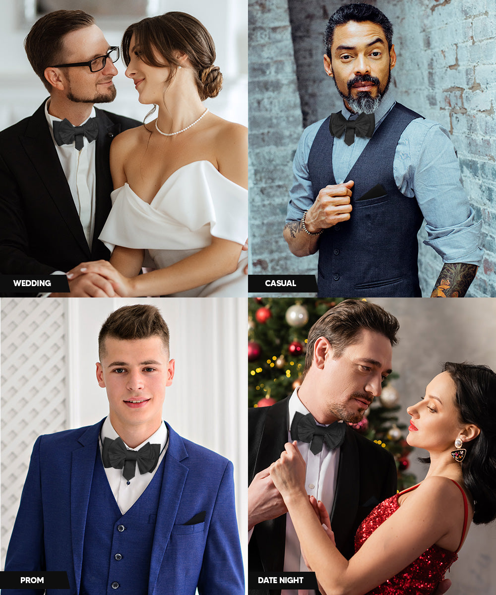 - STYLISH: Sometimes the smallest details can make the biggest difference. Men’s Vibrant Colorful XL Bow Tie & Pocket Square is the perfect accessory for your shirt, blazer, suit or tuxedo. The stylish Pocket Squares for men add a stylish touch.
