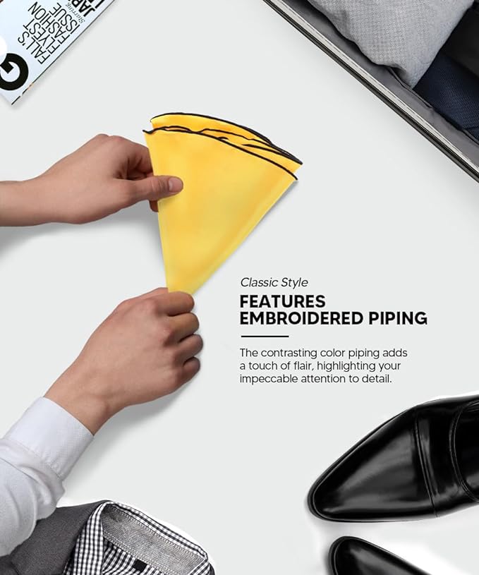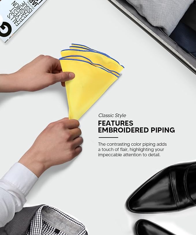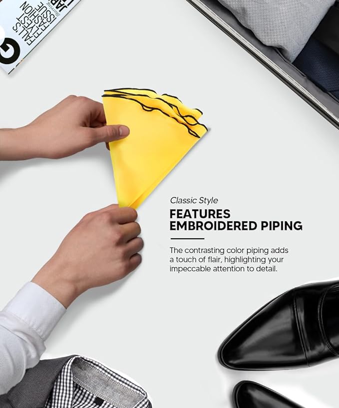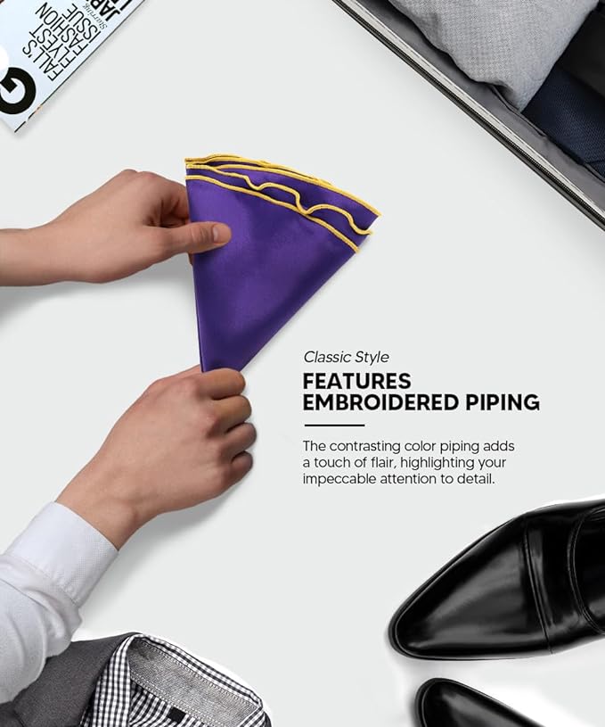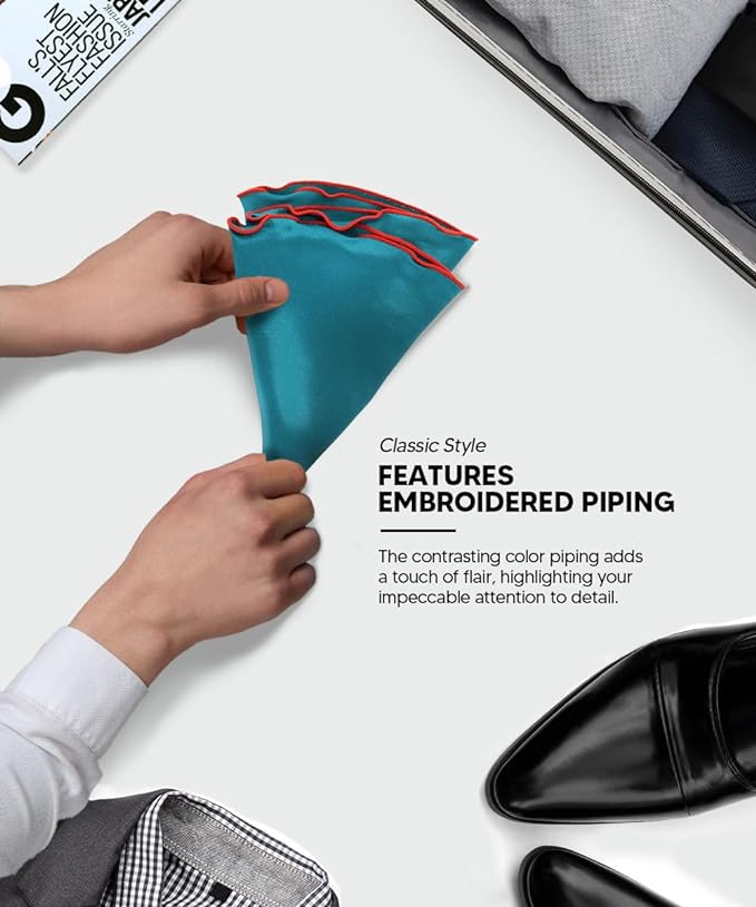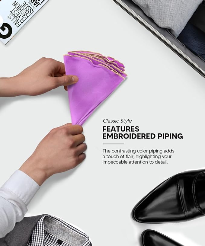 - VARIETY: Our Round Pocket Square with Embroidered Piping come in a variety of colors with contrasting color piping! Checkout our Pre-Folded, Designer and Silky Square designs in our store, we have a style for any event.