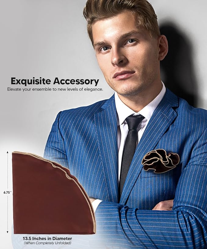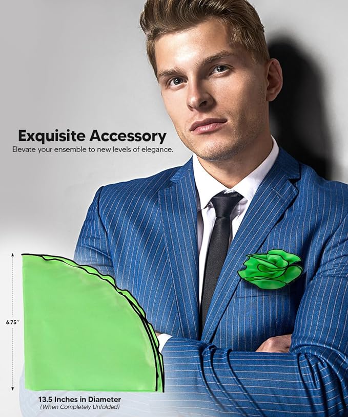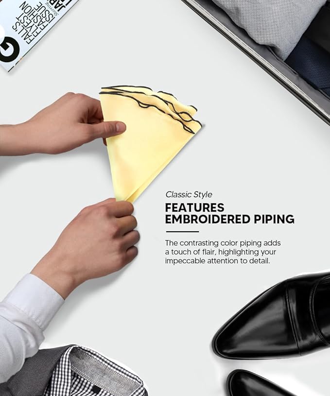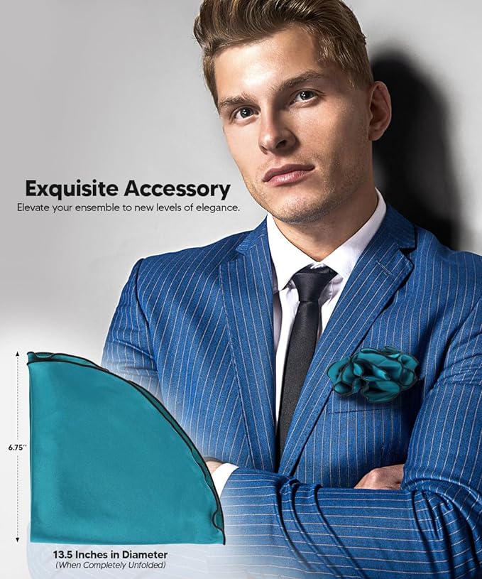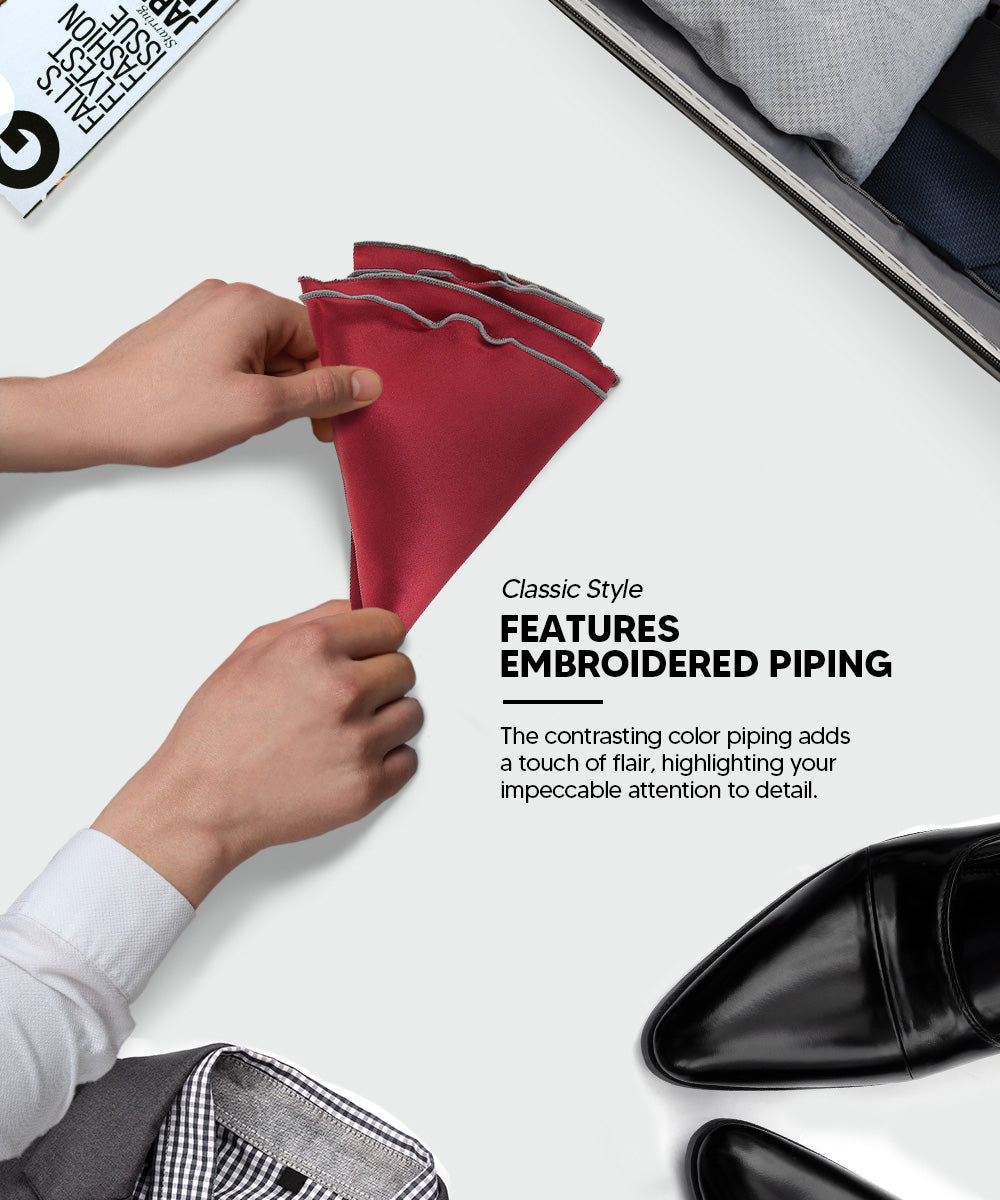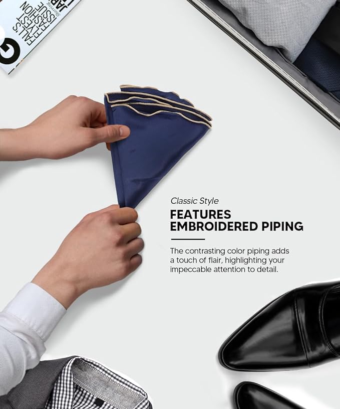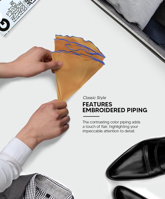 - STYLISH: Sometimes the smallest details can make the biggest difference. Men’s Round Pocket Square with Embroidered Piping is the perfect accessory for your shirt, blazer, suit or tuxedo. The stylish Pocket Squares for men add a stylish touch.