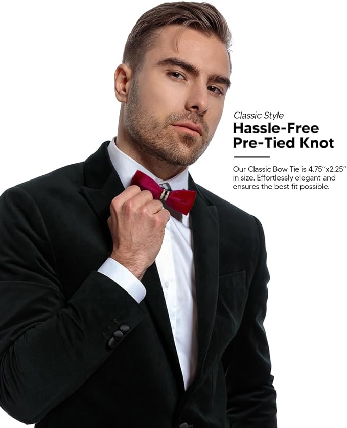 - STYLISH: Sometimes the smallest details can make the biggest difference. Men’s Vibrant Colorful Velvet Bow Tie is the perfect accessory for your shirt, blazer, suit or tuxedo.