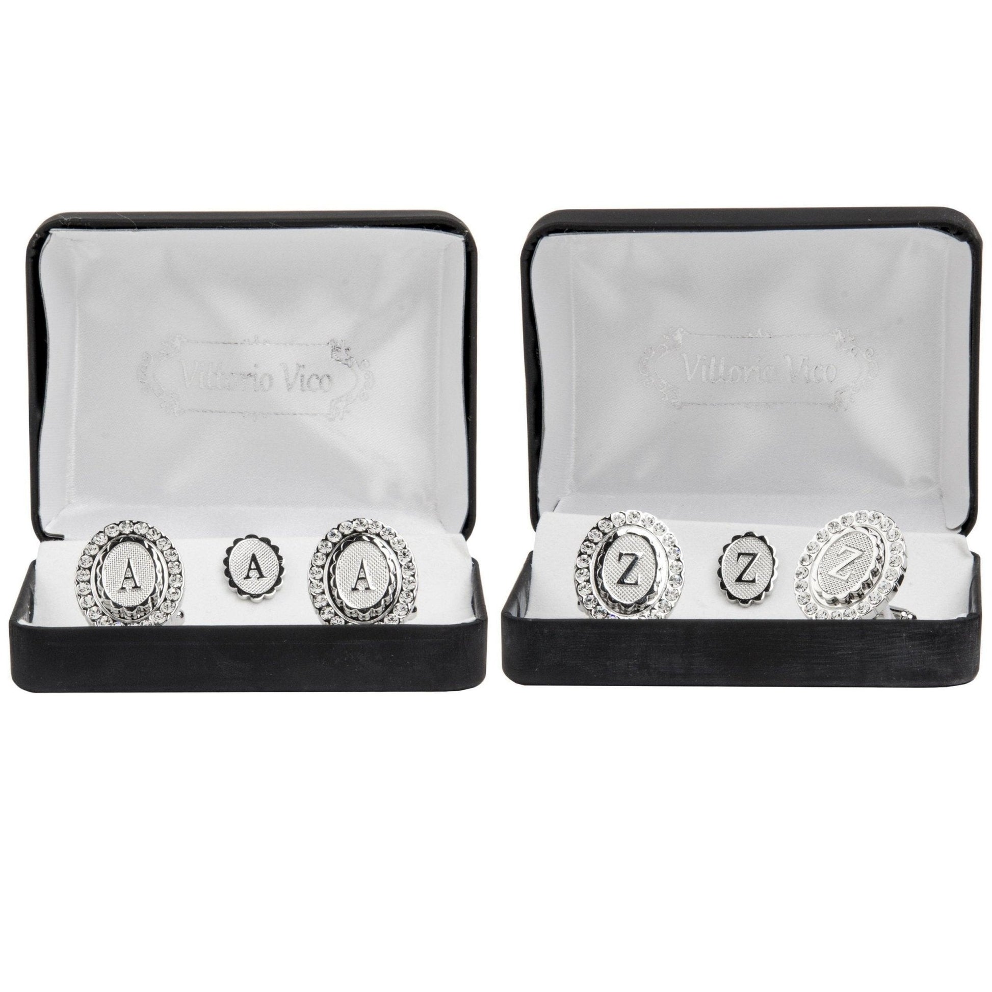 Vittorio Vico Bling Initial Cufflinks & Tie Tack Set: Accessories for Shirt, Blazer, Suit or Tuxedo
