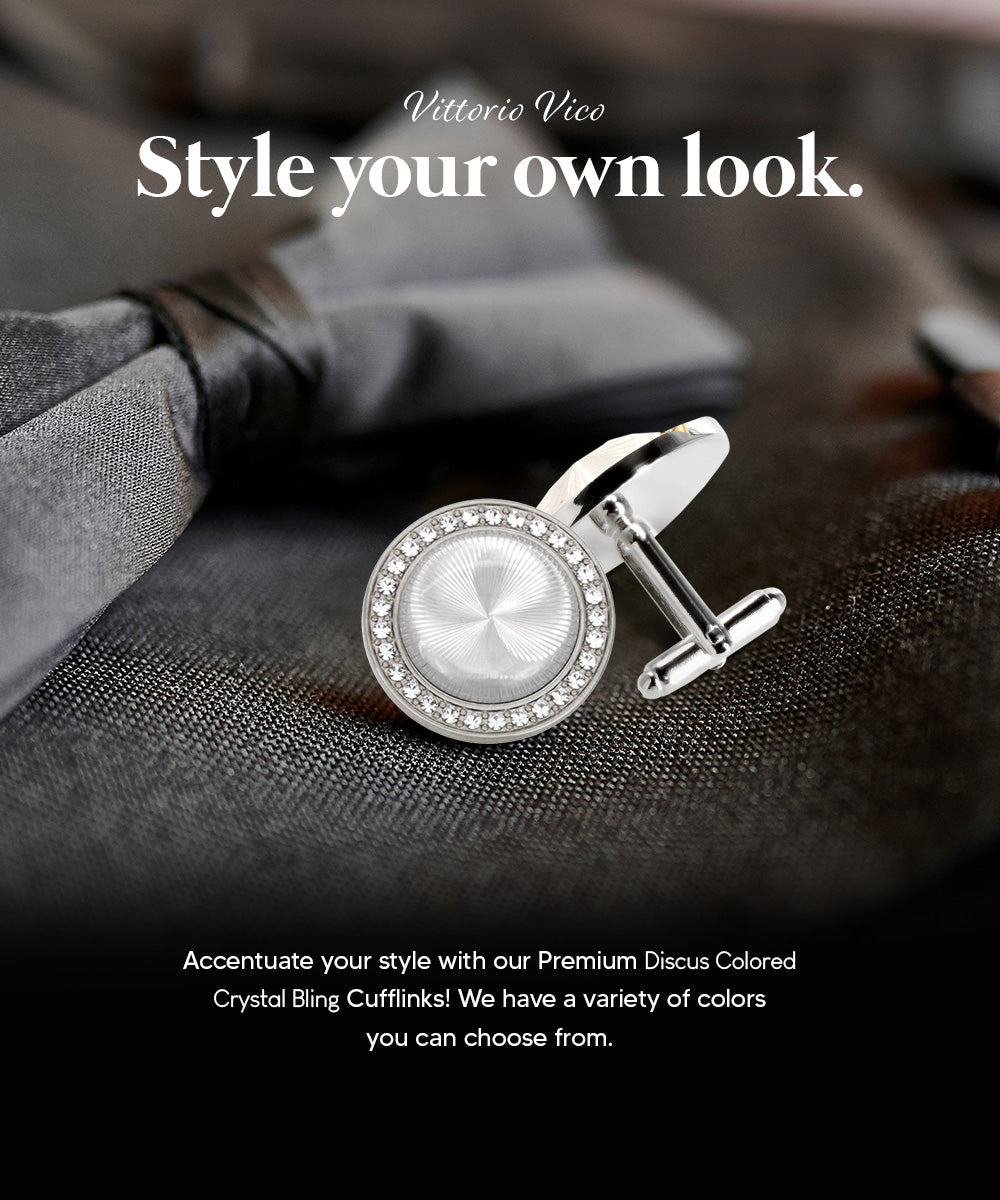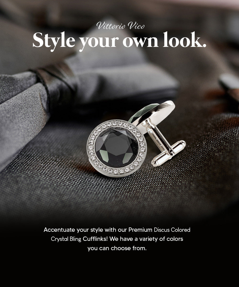 - STYLISH: Sometimes the smallest details can make the biggest difference. Men’s Discus Colored Crystal Bling Cufflinks are the perfect accessory for your shirt, blazer, suit or tuxedo. The stylish Cufflinks for men add a stylish touch.