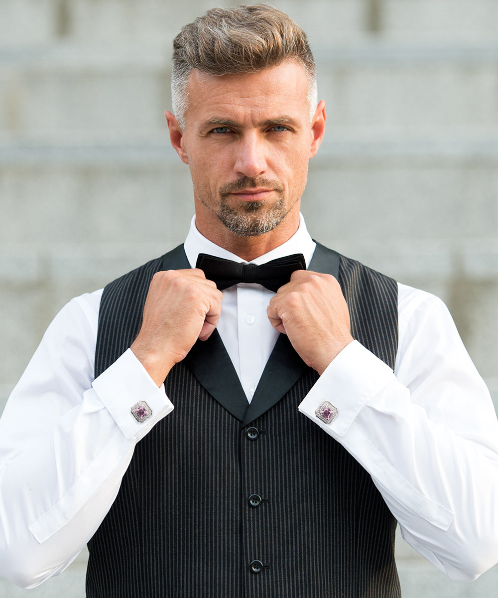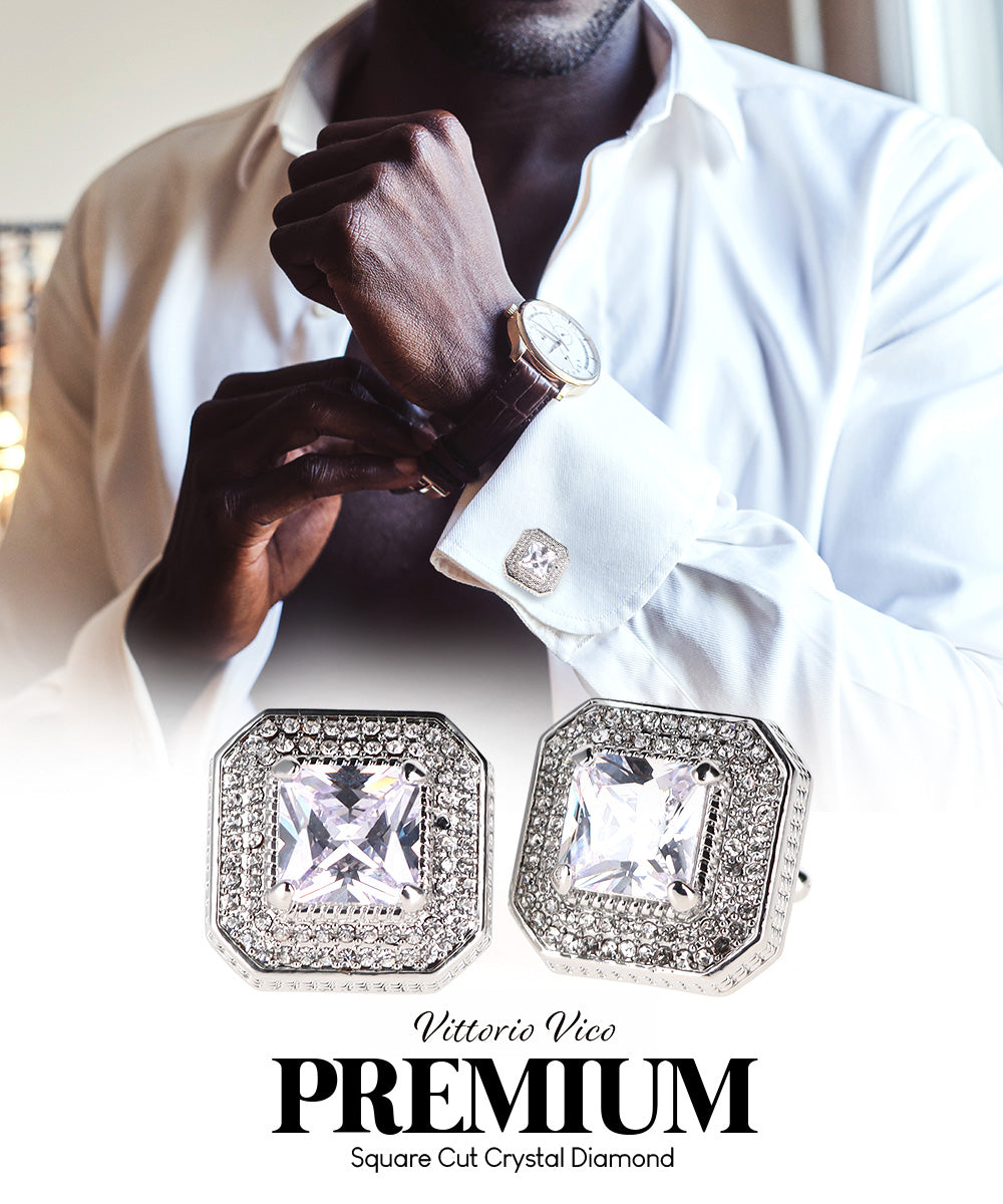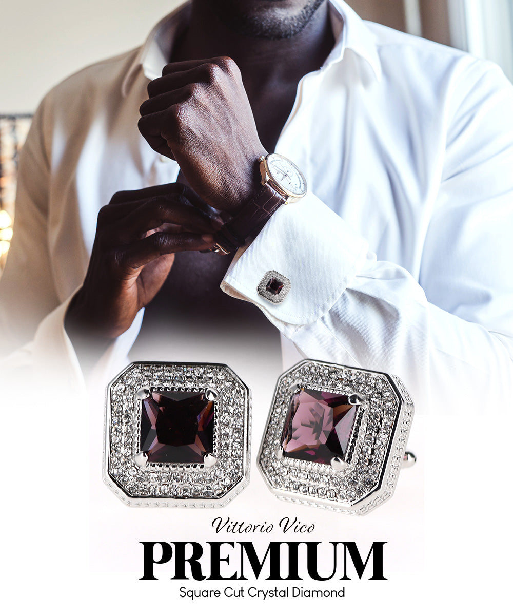 - STYLISH: Sometimes the smallest details can make the biggest difference. Men’s Square Colored Crystal Diamond Cufflinks are the perfect accessory for your shirt, blazer, suit or tuxedo. The stylish Cufflinks for men add a stylish touch.