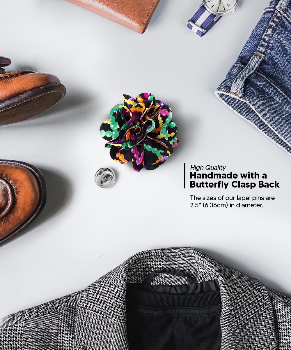 - STYLISH: Sometimes the smallest details can make the biggest difference. Men's Formal Mardi Gras flower lapel pin for suits is the perfect suit accessory for your blazer. The stylish pins for men add a stylish touch to your formal wear. You can even add this to your tie as a tie pin!